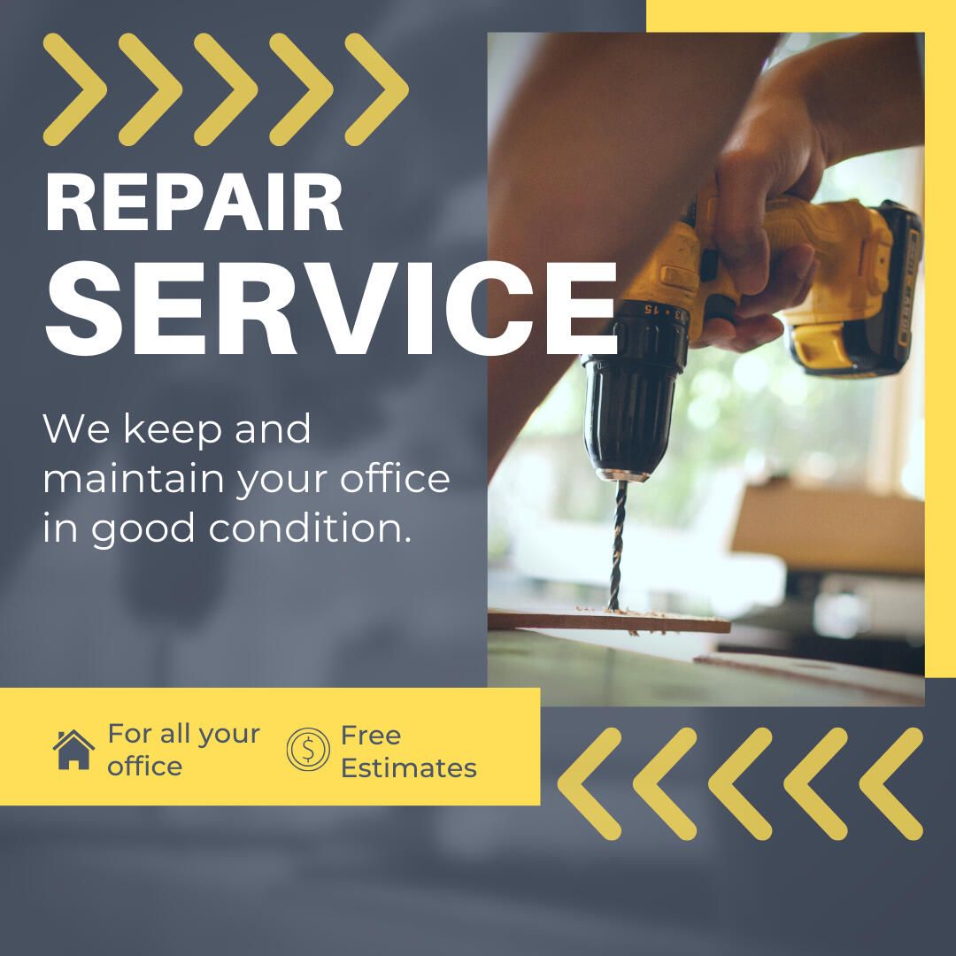 Repair services include fixing household issues like faucet drips, window screen repairs, paint touch-ups, cabinet door adjustments, and minor problems such as loose tiles, squeaky doors, or loose pickets in fences. These quick tasks improve both the functionality and appearance of your office. And more...